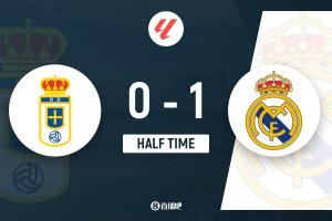 上半场补时2分钟,皇家奥维耶多0-1皇马。