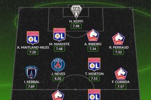 后卫:奈尔斯(里昂,7.20分)、穆萨-尼亚卡特(里昂,7.48分)、亚历山德罗-里贝罗(里尔,7.34分)、罗曼-佩罗(里尔,7.33分)